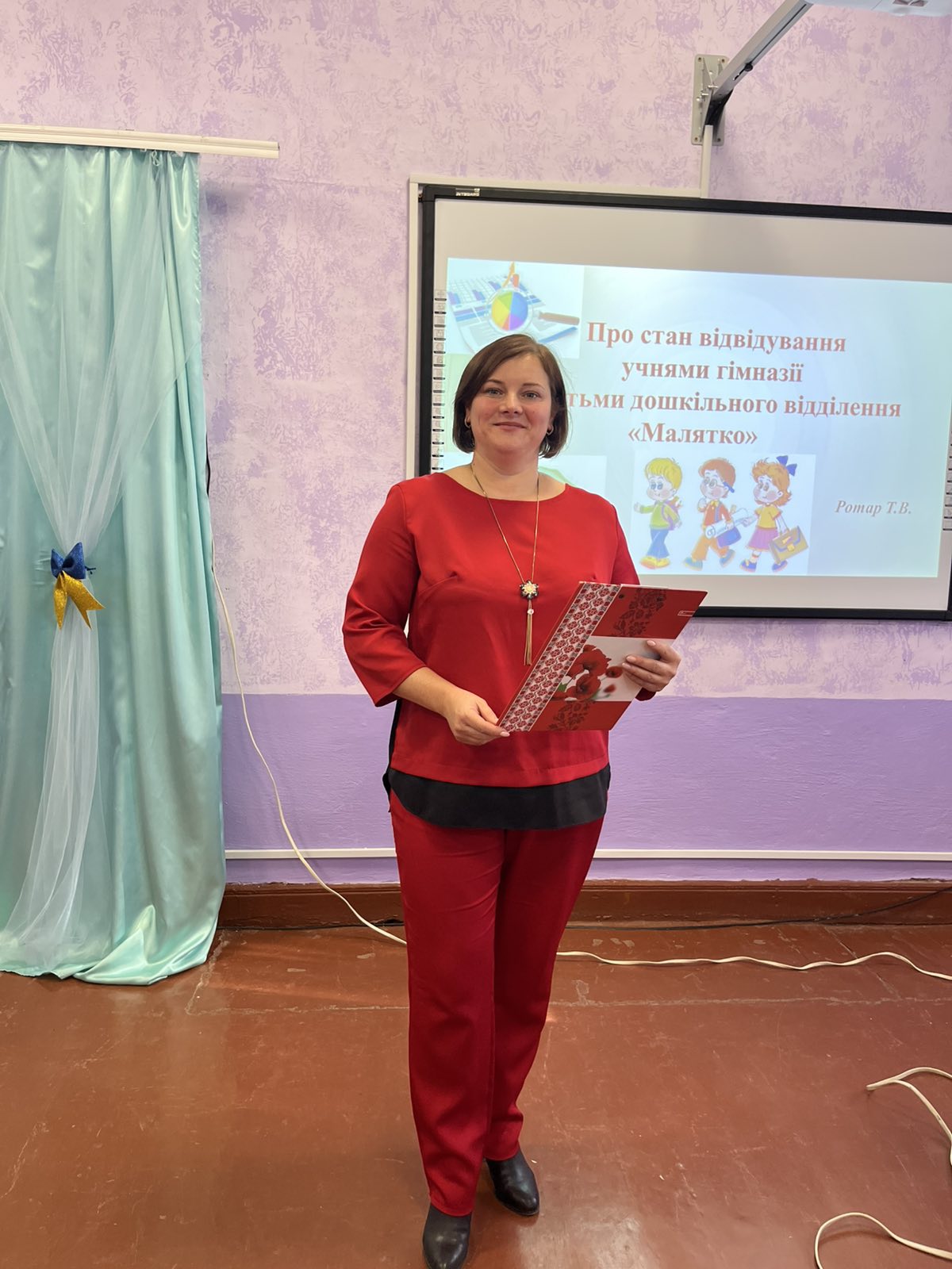 Обговорено питання відвідування занять учнями гімназії та дітьми дошкільного відділення «Малятко». Заступник директора з НВР Ротар Т.В. наголосила на необхідності тісної співпраці з батьками для запобігання пропускам без поважних причин і забезпечення систематичності навчання.