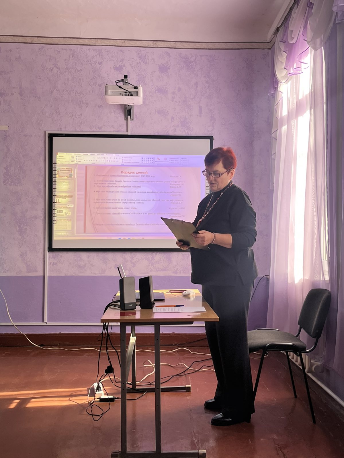 Директор гімназії Коляско Т.І. поінформувала присутніх про особливості освітнього процесу в новому навчальному році, акцентувавши увагу на створенні безпечного, комфортного й сучасного освітнього середовища, дотриманні вимог чинного законодавства та організації навчання в умовах воєнного стану.