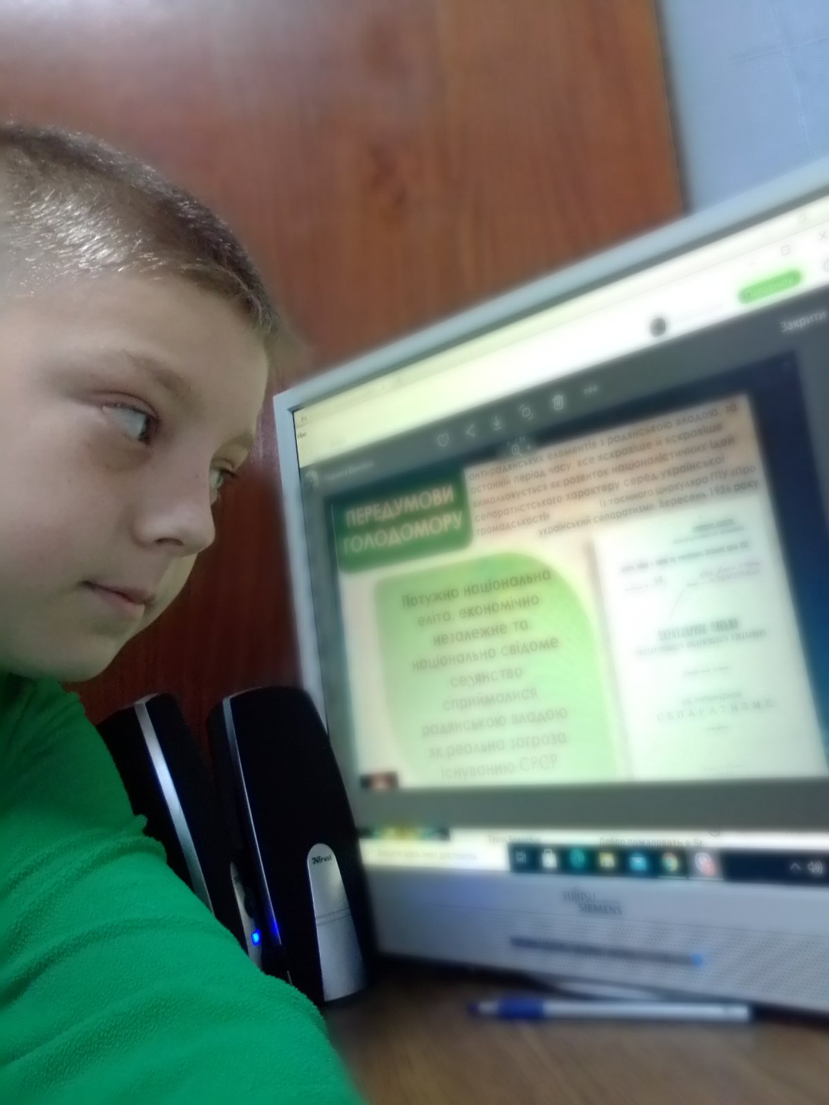 Вчитель історії Коляско І.С. у 11 класі провів урок «Допоки пам’ять в серці не згасає», на якому було розкрито причини голоду в Україні в ті страшні роки, а також переглядаючи відеофрагменти https://www.youtube.com/watch?v=efM9p9yOEtY&ab_channel=ZAXID.NET, учні слухали свідчення очевидців голодомору, вшанували померлих хвилиною мовчання, запалили свічку пам’яті.