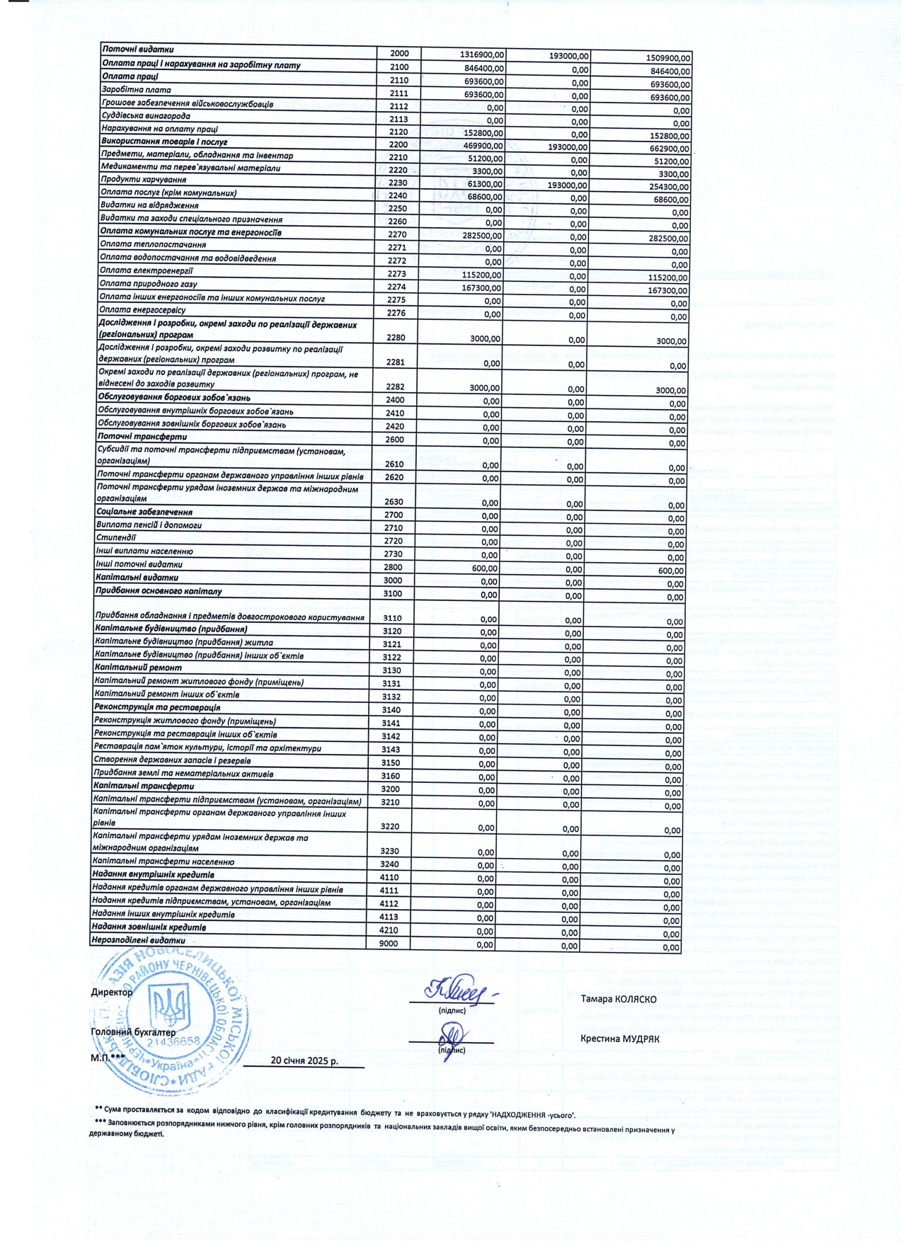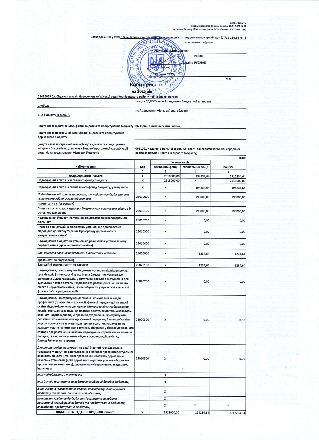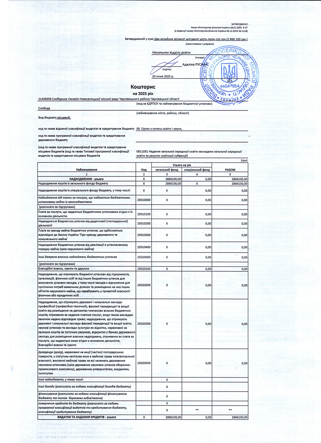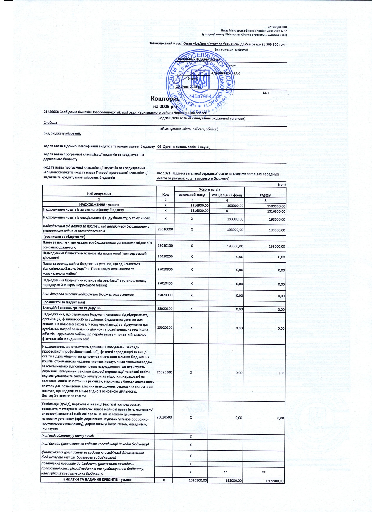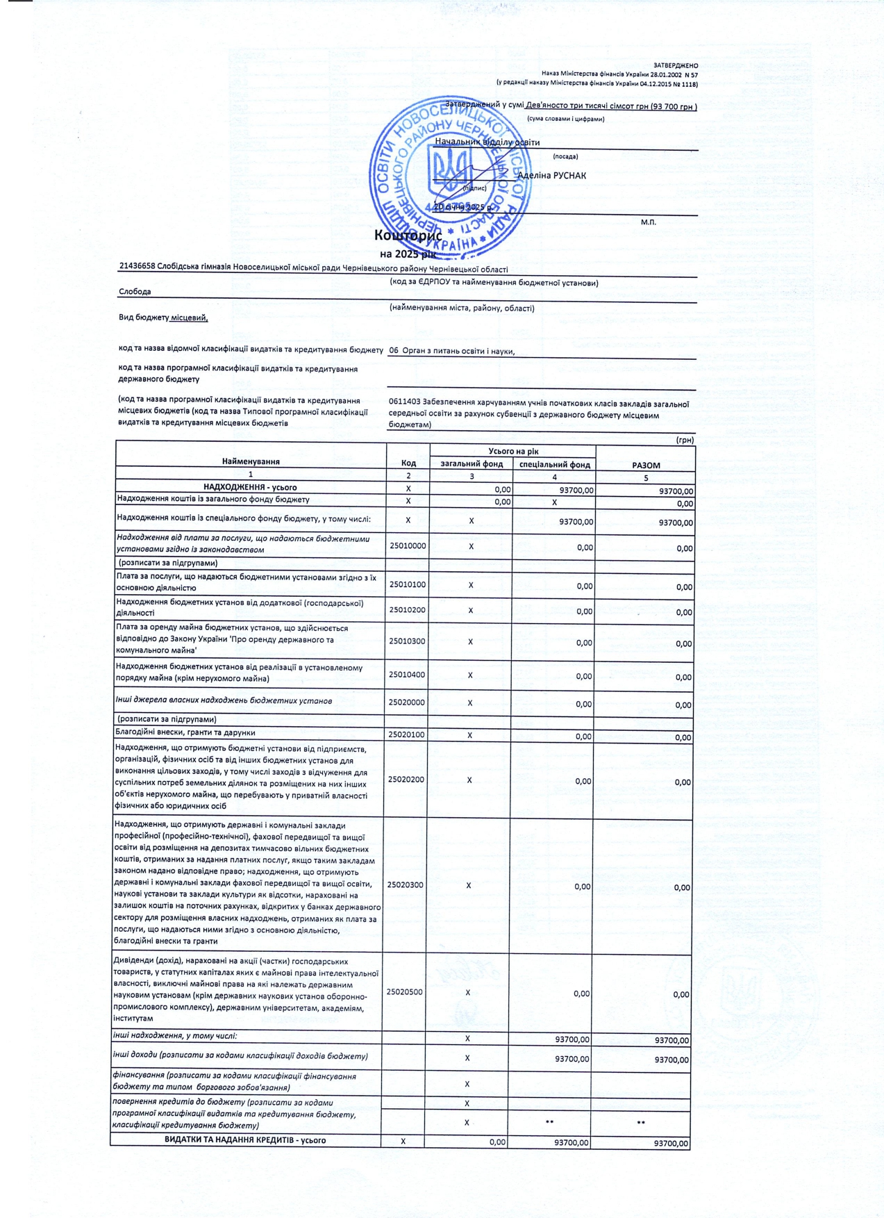 Кошторис на 2025 рік